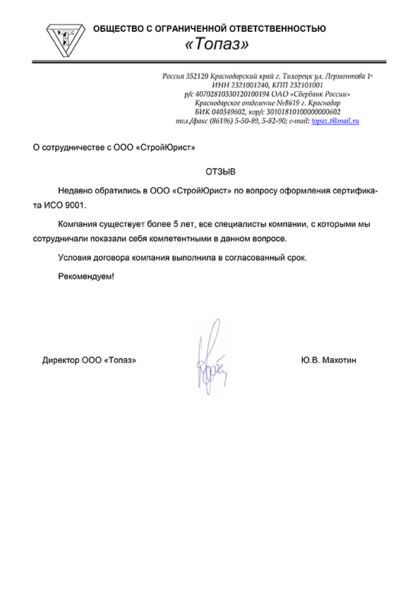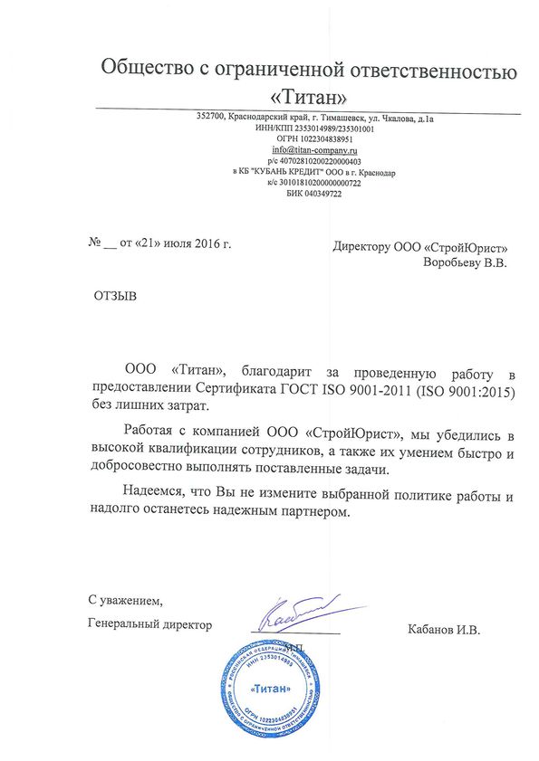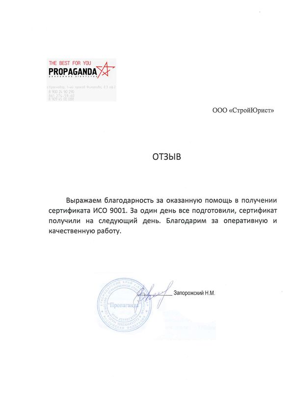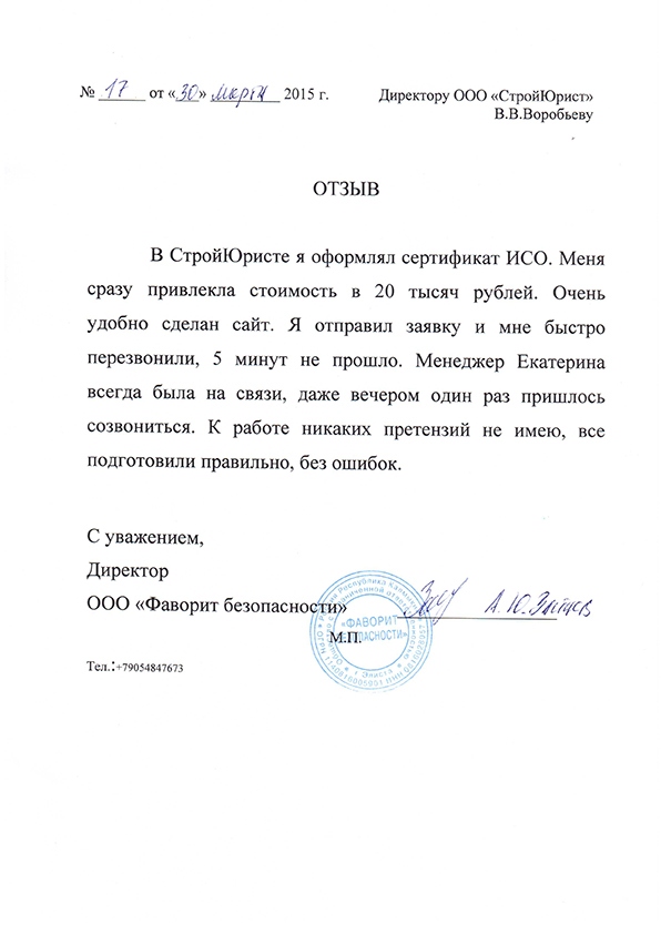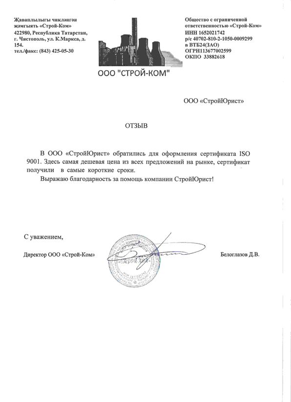 Отзывы клиентов "СтройЮрист" по ISO в Набережных Челнах