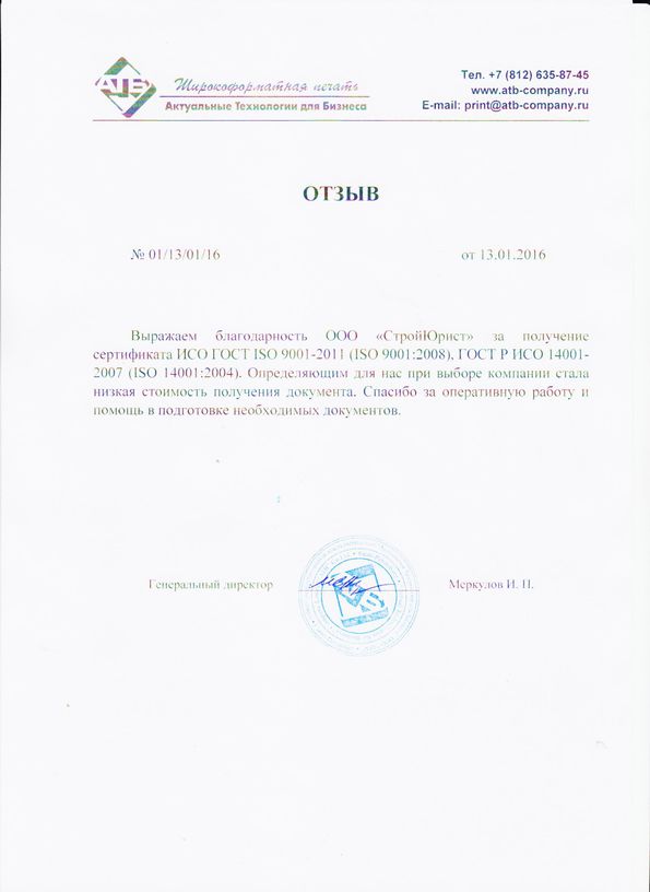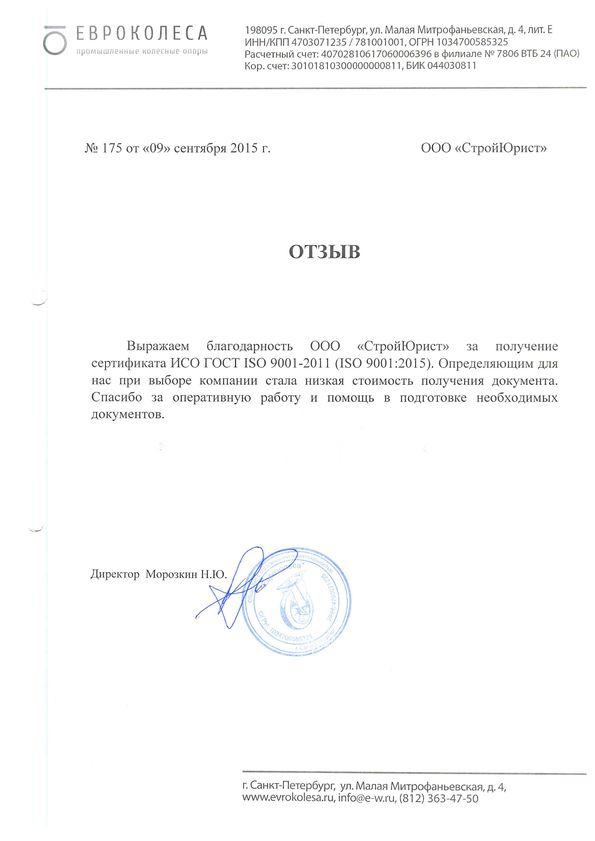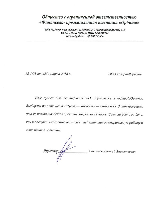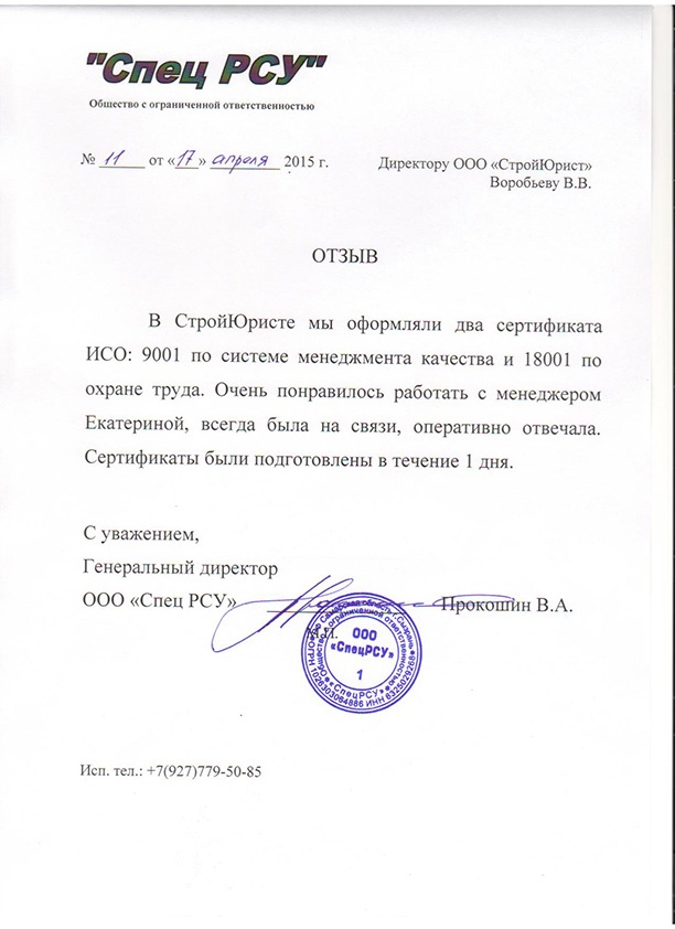 Отзывы клиентов "СтройЮрист" по ISO в Набережных Челнах