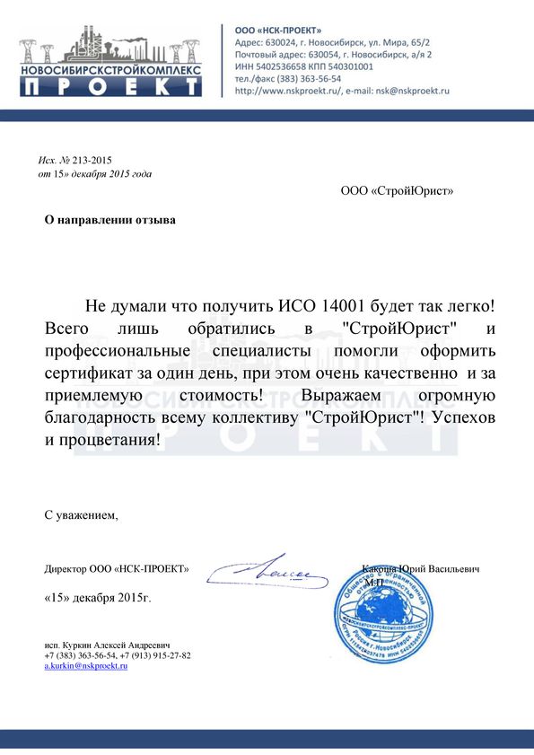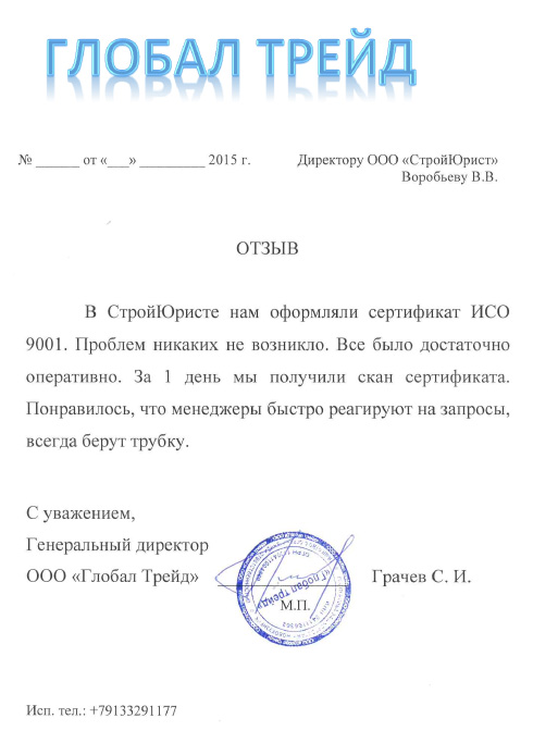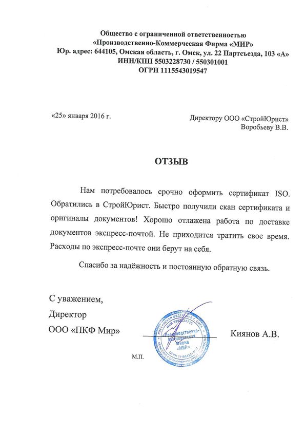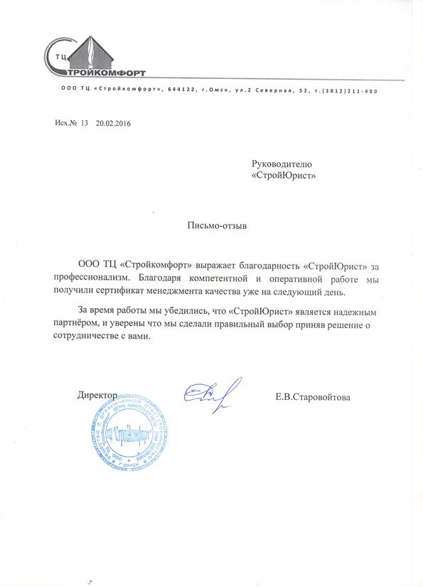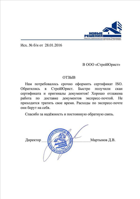 Отзывы клиентов "СтройЮрист" по ISO в Набережных Челнах