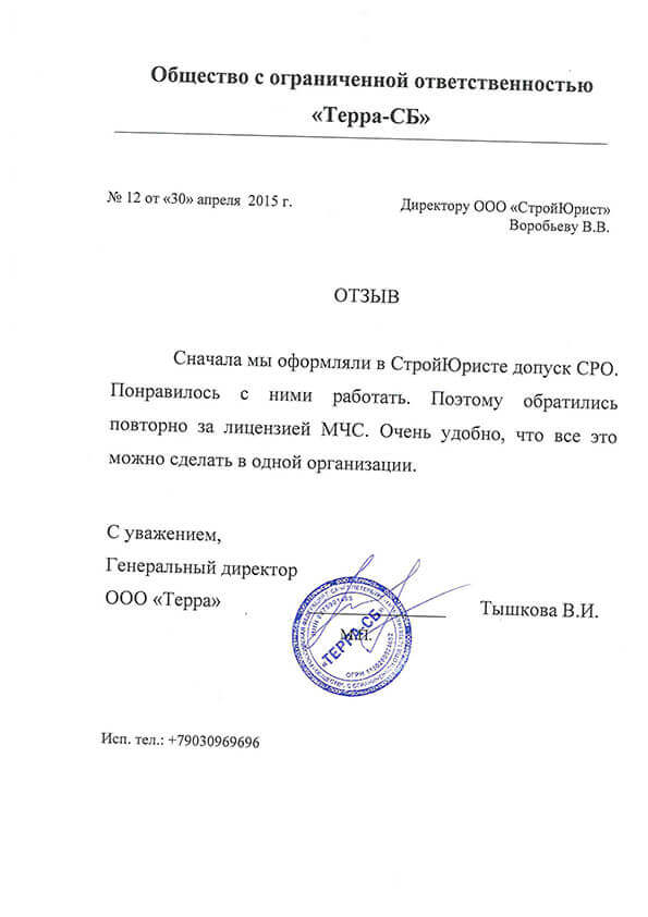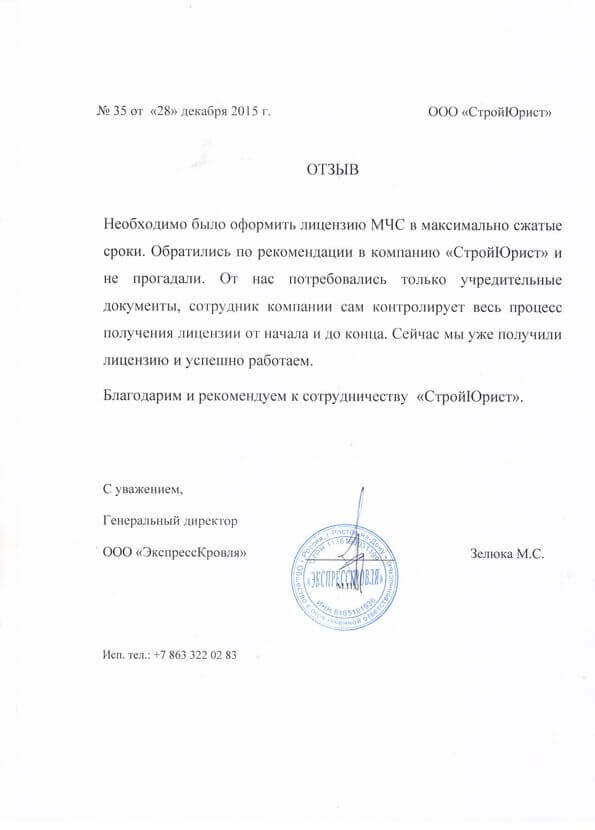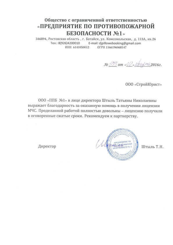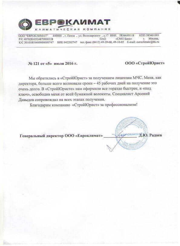 Отзывы клиентов "СтройЮрист" по лицензированию МЧС в Набережных Челнах