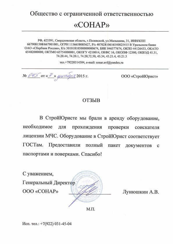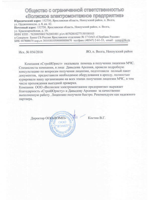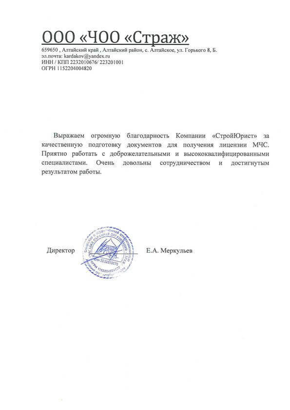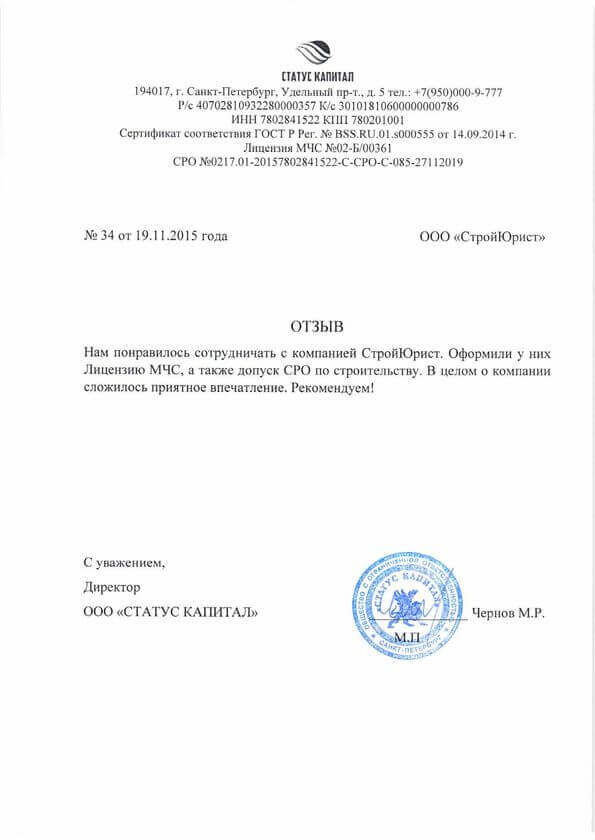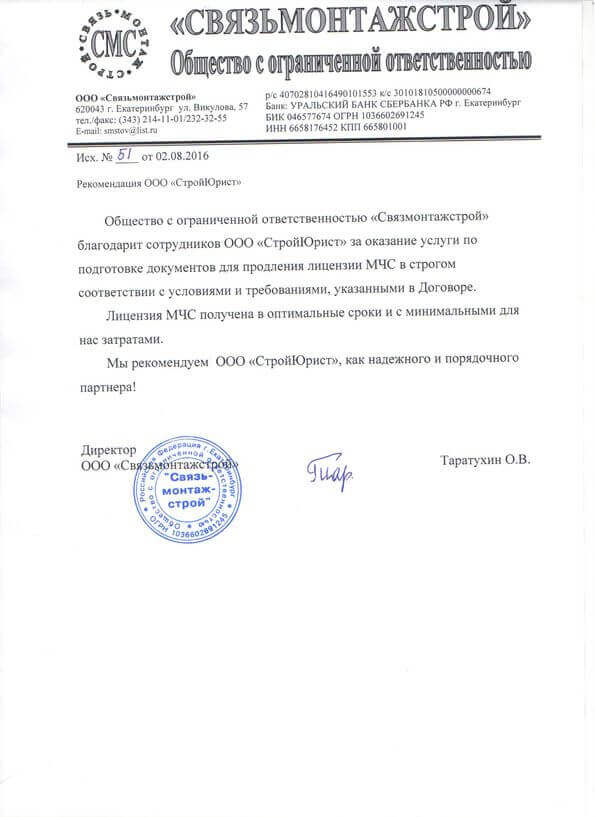 Отзывы клиентов "СтройЮрист" по лицензированию МЧС в Набережных Челнах