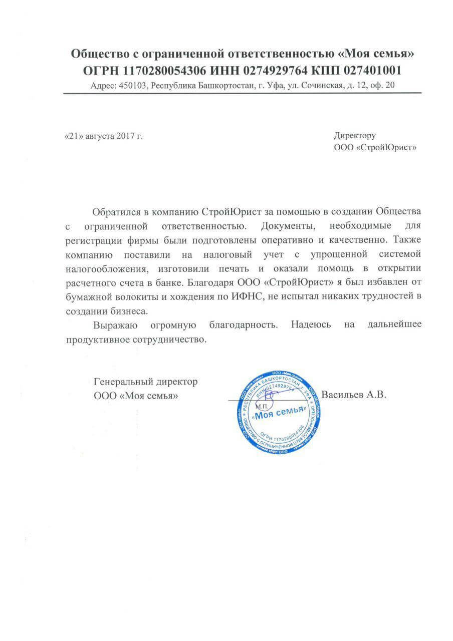 Отзывы клиентов "СтройЮрист" по регистрации фирм в Набережных Челнах