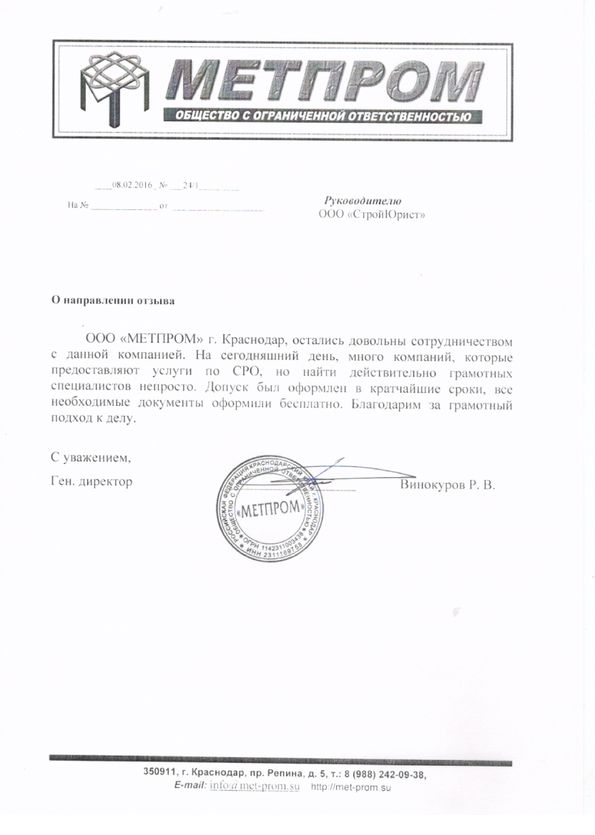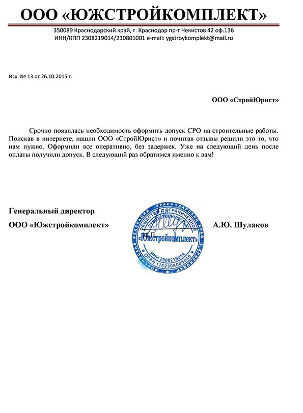 Отзывы клиентов "СтройЮрист" по вступлению в СРО в Набережных Челнах