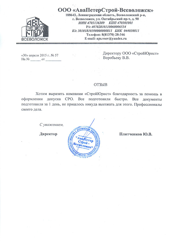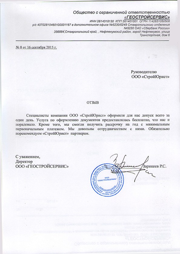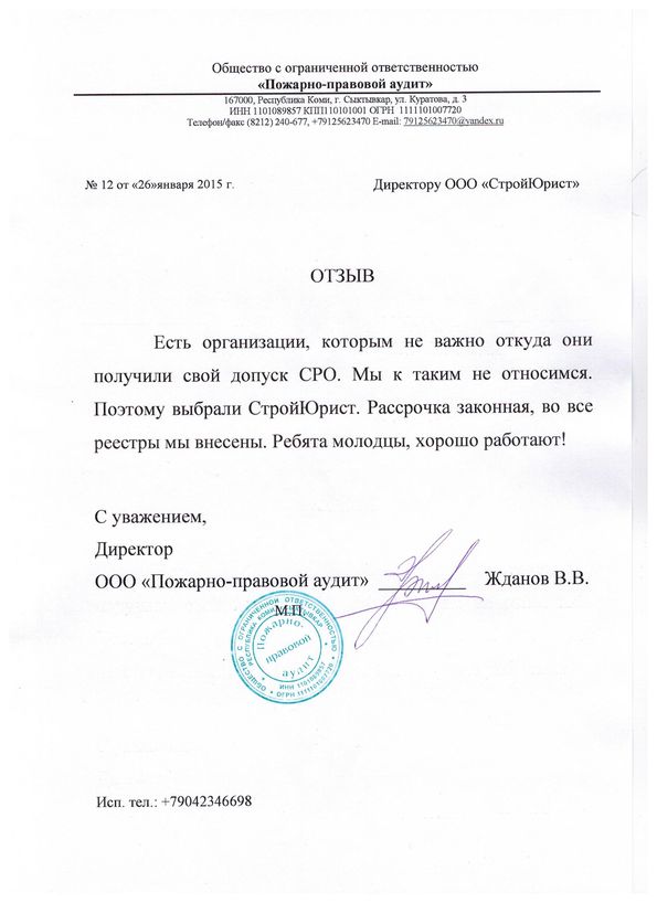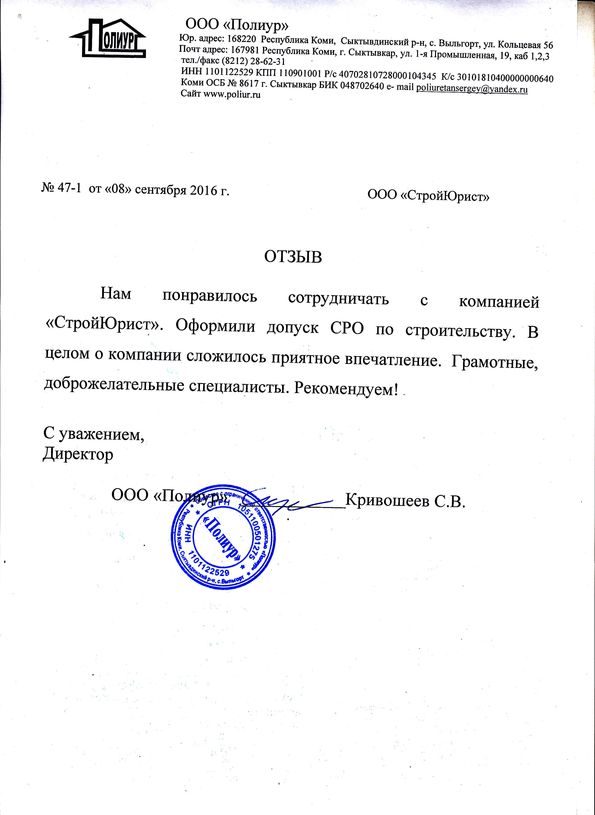 Отзывы клиентов "СтройЮрист" по вступлению в СРО в Набережных Челнах