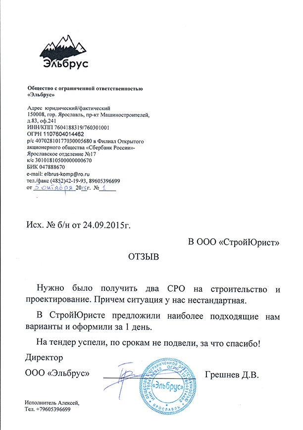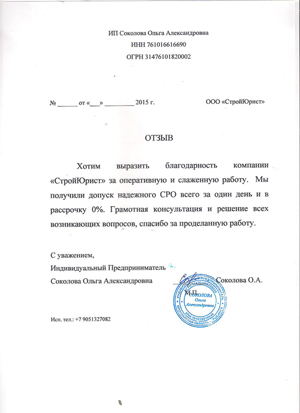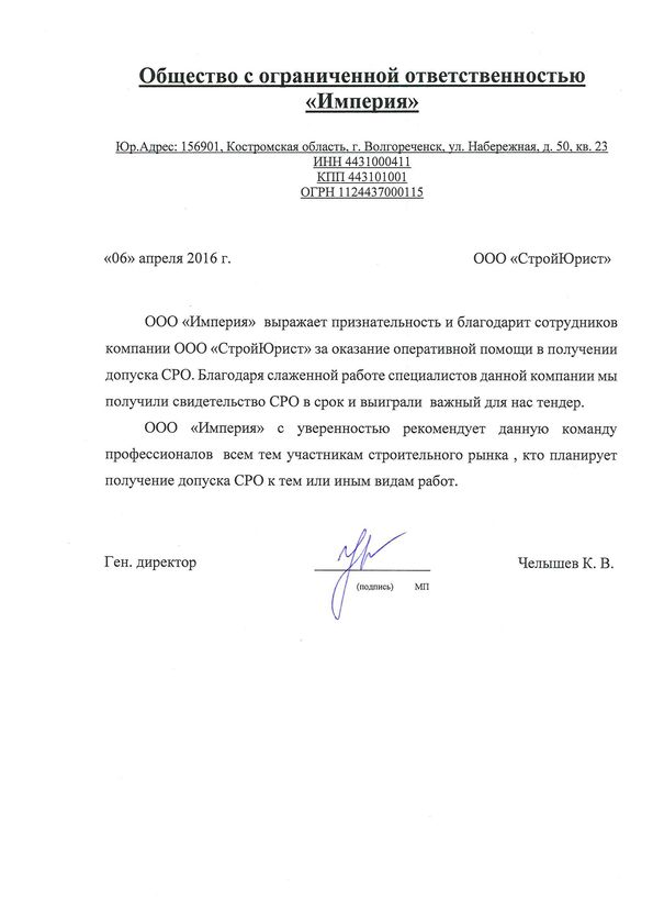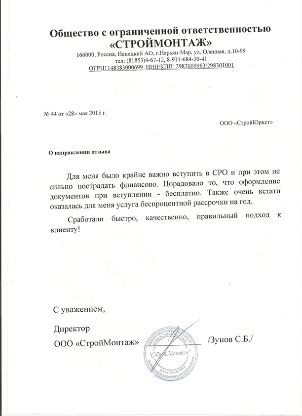 Отзывы клиентов "СтройЮрист" по вступлению в СРО в Набережных Челнах
